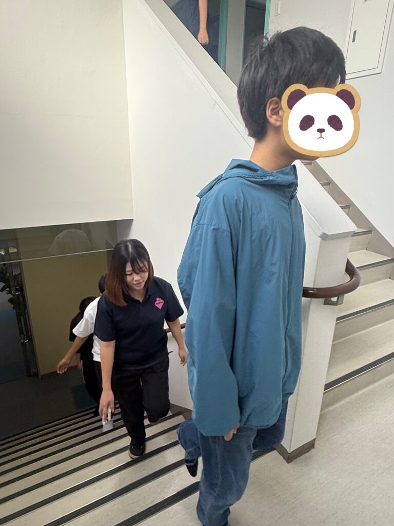 先生の話をよく聞き、指示に従って落ち着いて2階に行き、無事に速やかに避難することが